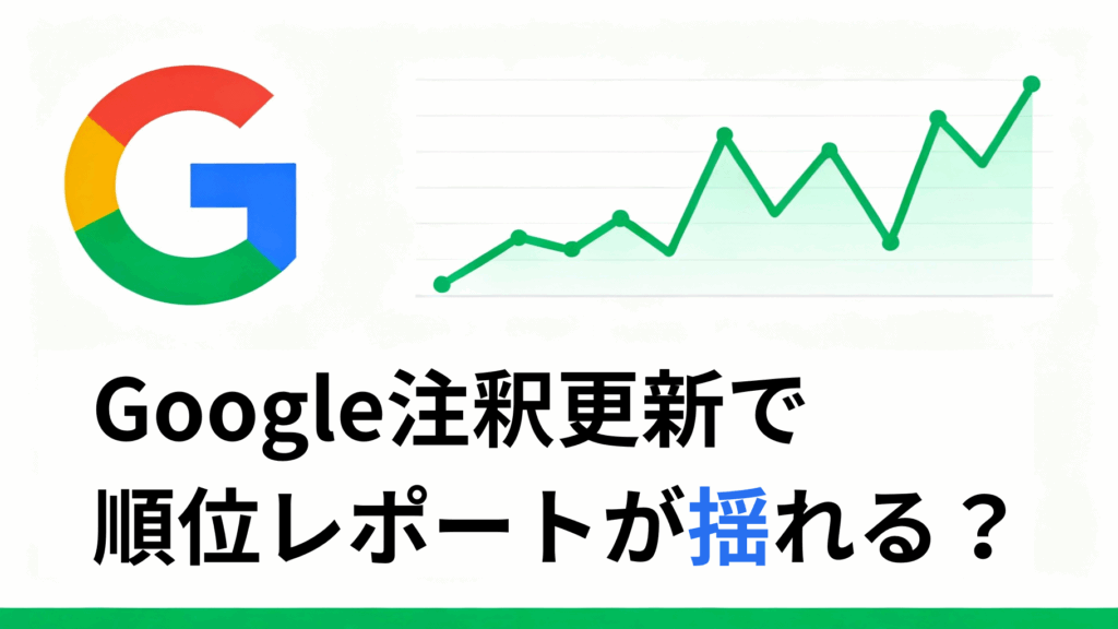 Googleの注釈更新で順位レポートが揺れて見える件を解説。GSC・流入・CVを基準に評価し、王道のMEO/SEOを継続するのが正解です。